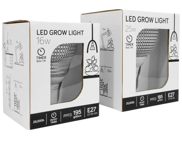 4000K full spectrum led peraHentar fyrir bæði uppvöxt og blómstrunTvær tímastillingar , 9 eða 15 tímarPassar í venjulegt perustæði